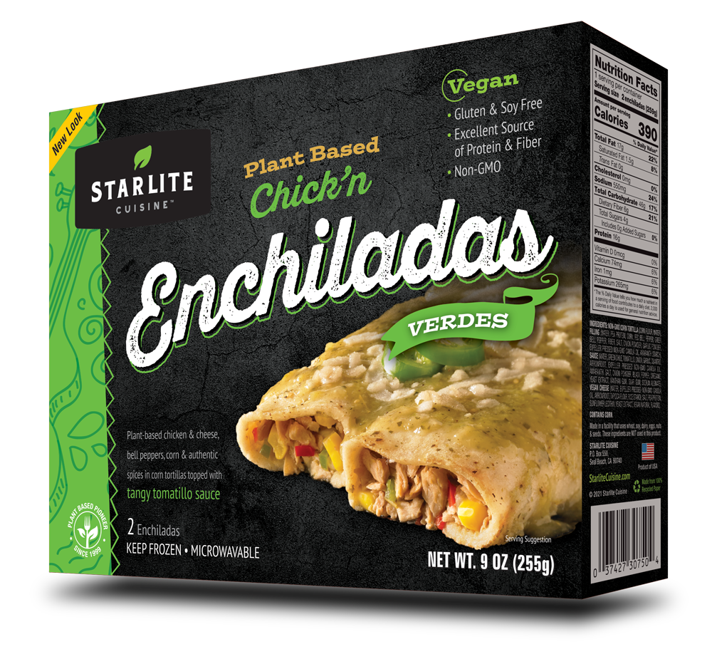 Non-GMO Corn Tortilla (Corn Flour, Water), Filling (Water, Pea Protein, Corn, Red Bell Pepper, Green Bell Pepper, Fiber, Salt, Onion Powder, Garlic Powder, Expeller Pressed non-GMO Canola Oil, Amaranth Starch), Sauce (Water, Green Chile, Tomatillo, Onion, Garlic, Cilantro, Arrowroot, Expeller Pressed non-GMO Canola Oil, Amaranth, Salt, Onion Powder, Black Pepper, Oregano, Yeast Extract, Xanthan Gum, Guar Gum, Sodium Alginate), Vegan Cheese (Water, Expeller Pressed non-GMO Canola Oil, Arrowroot, Tapioca Flour, Rice Starch, Salt, Pea Protein, Sunflower Lecithin, Yeast Extract, Vegan Natural Flavors).